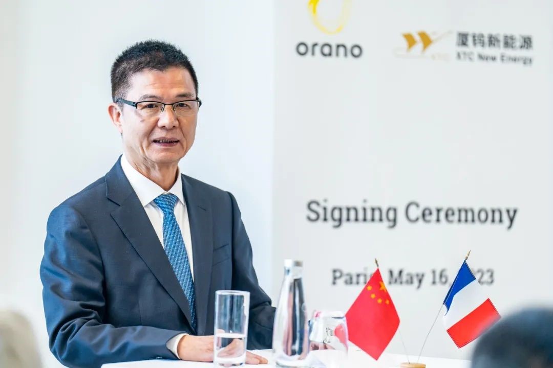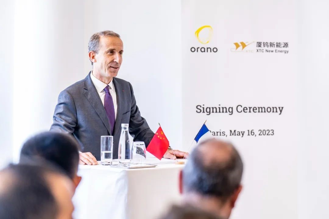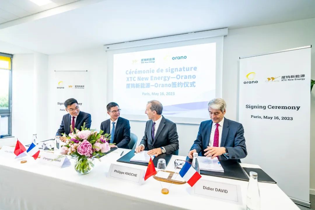 On May 16, 2023 Beijing time, XTC New Energy and Orano signed the agreements to create two joint ventures in Paris. Philippe Knoche, CEO of Orano group, Didier David, Battery Project Director of Orano group, Huang Changgeng, Chairman of XTC group, Jiang Long, General Manager of XTC New Energy, and other leaders from both parties attended the ceremony.